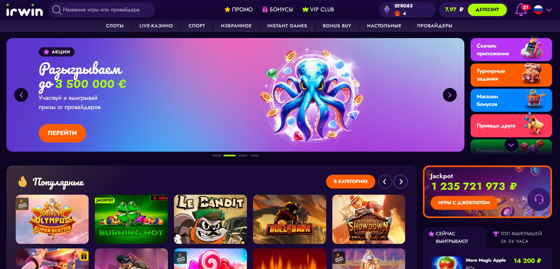 В последнее время стало популярное это казино , тоже очень много слотов и есть спортбук. Выводы работают , не разу не было доп верификации.